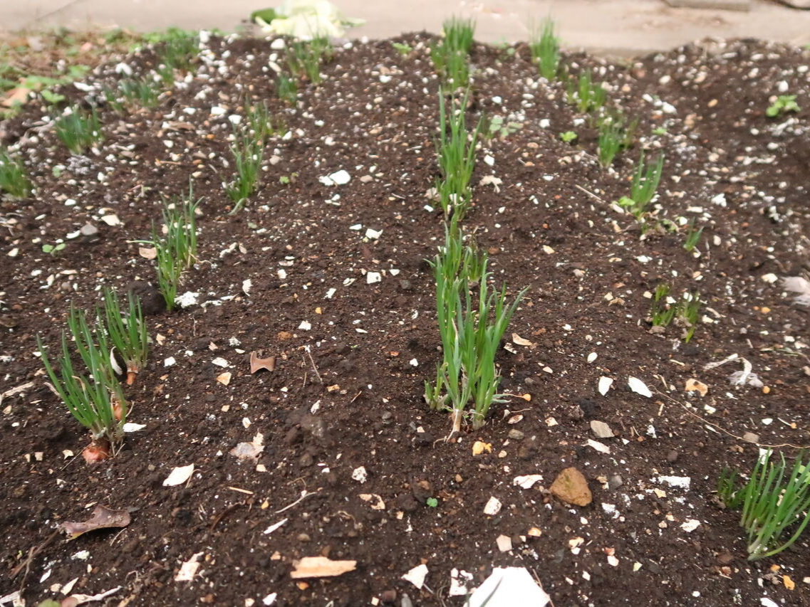 2. 9월 초: 종구 선별(균일 크기), 깊이 2-3cm 정식, 줄 12cm × 포기 3-4cm