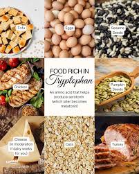 - 트립토판: 우유, 달걀, 견과류, 닭고기