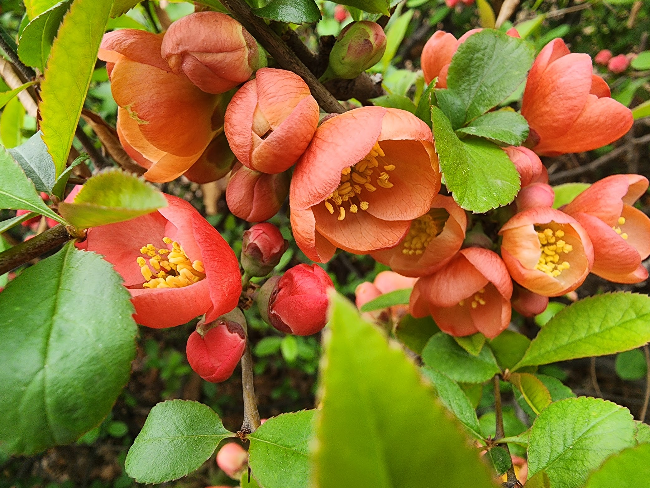 명자나무는 장미과에 속하는 낙엽성 관목으로, 주로 우리나라 남부 지역과 중국, 일본 등지에서 자생하거나 재배되고 있습니다. 높이는 약 1-2미터 정도이며 가지가 촘촘하게 나 있어 울타리용으로도 많이 심습니다. 이 나무의 꽃은 4-5월에 피는데, 붉은색, 연분홍, 흰색 등 다양한 색상을 띠며, 개화 기간이 비교적 긴 편입니다.