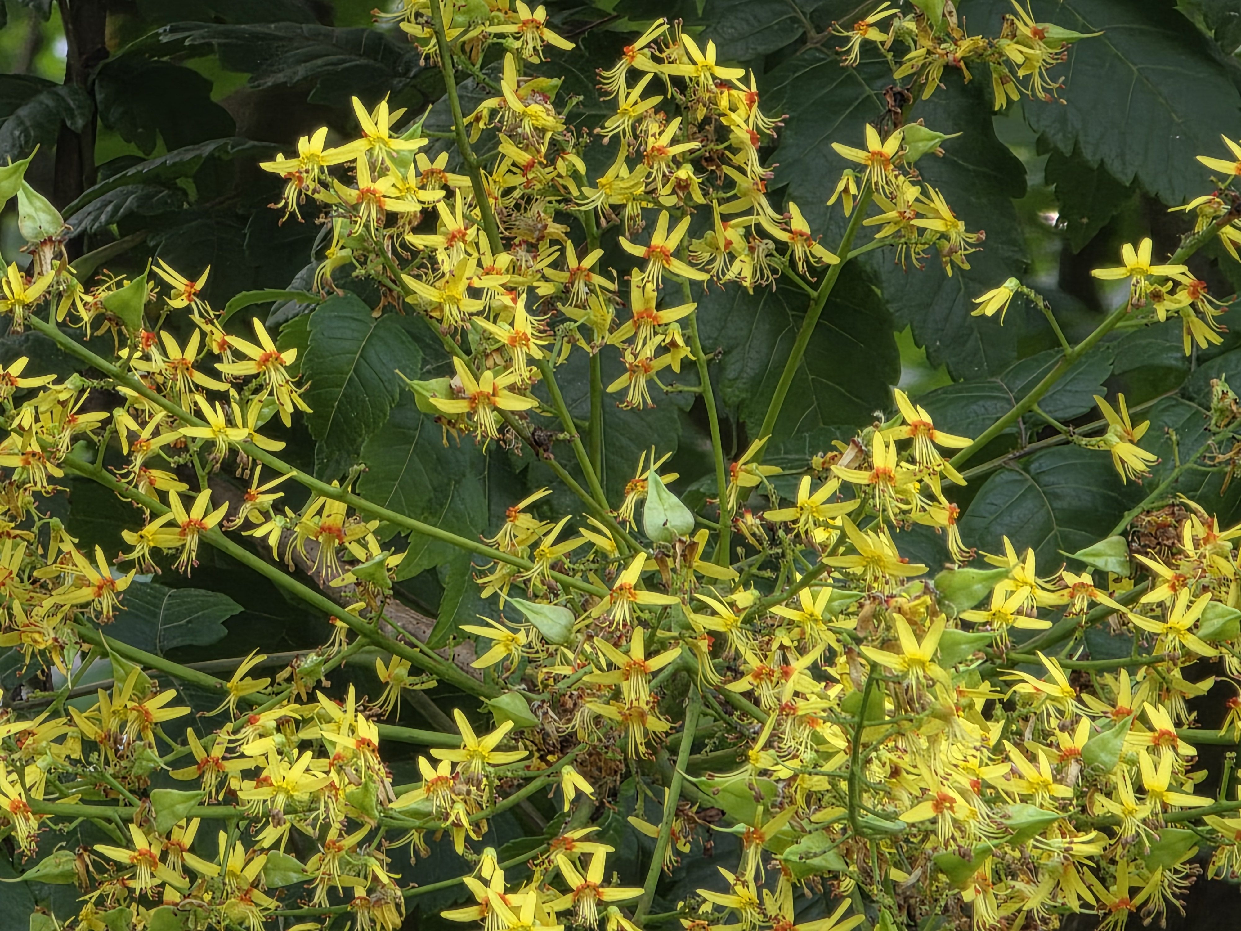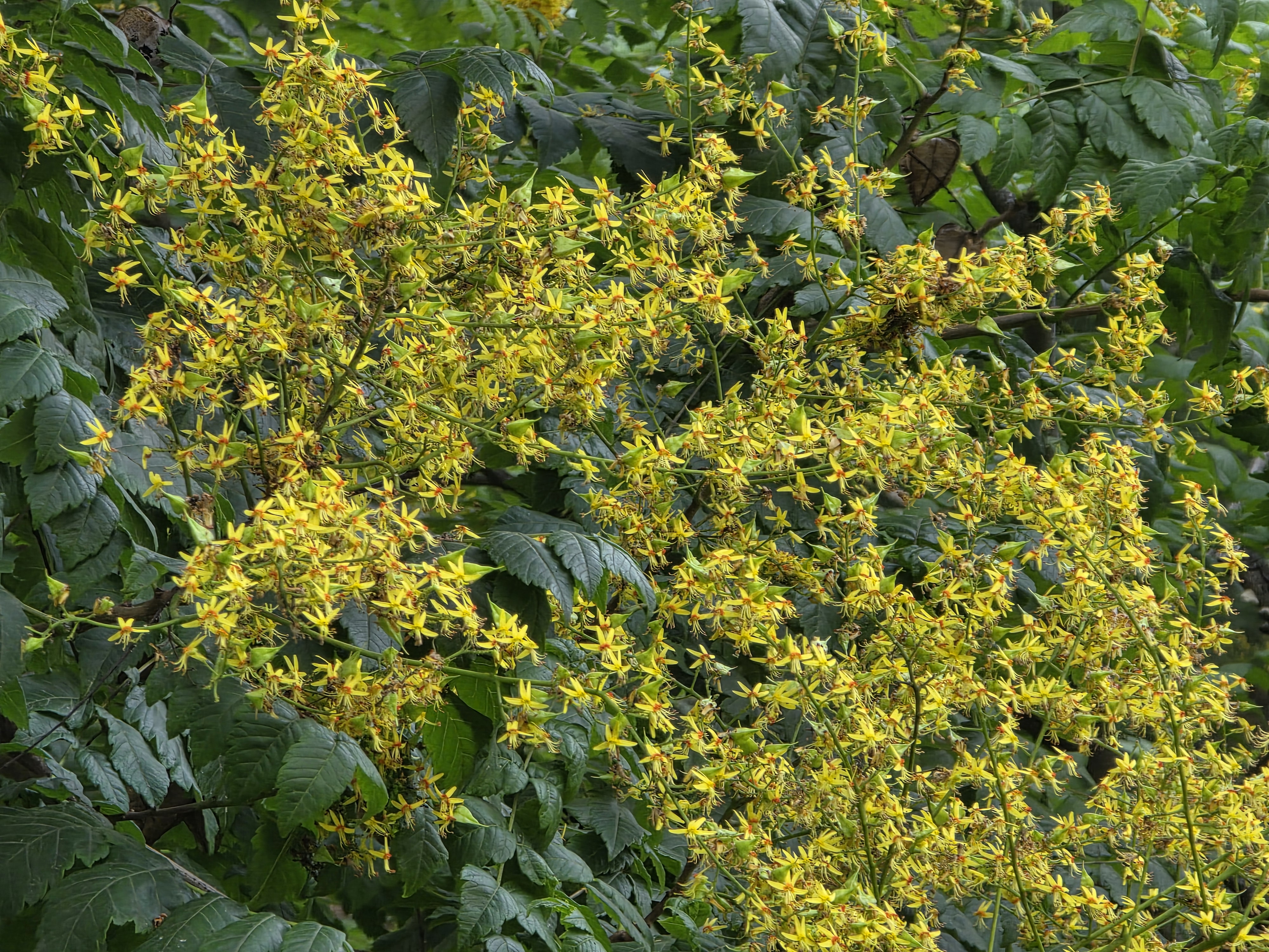모감주나무는 학명으로 Koelreuteria paniculata Laxm. 1772라 하며, 무환자나무과(Sapindaceae)에 속하는 낙엽 활엽 교목입니다. 관다발식물군에 속하며, 속씨식물 중에서도 장미군(Rosids)에 포함되는 비교적 진화한 식물군에 속하죠.