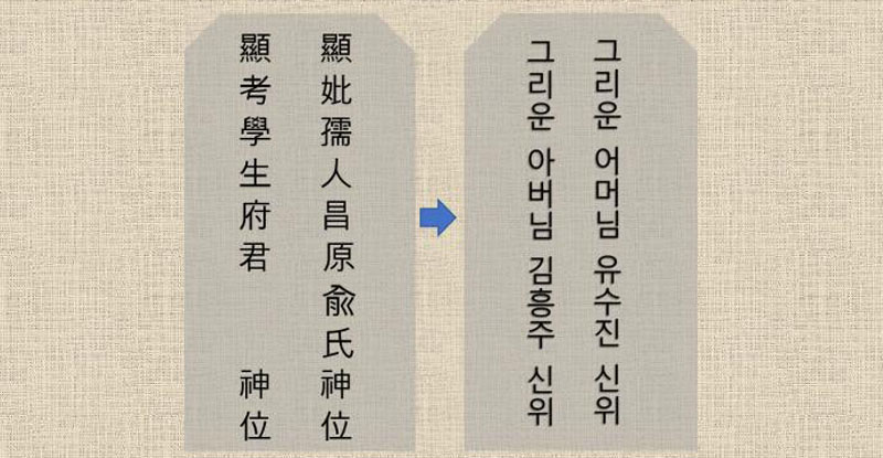 즉, 돌아가신 분과의 관계에 따라 ‘고(考), 비(妣), 조고(祖考), 조비(祖妣)’ 등의 표현이 달라집니다.