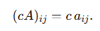 - 스칼라배: 수 $c$와 행렬 $A$에 대하여