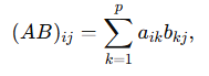 - $A$는 $m\times p$, $B$는 $p\times n$ 행렬일 때,
