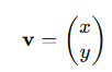 - 2차원 벡터 $\mathbf{v}=(x,y)$는 열벡터로