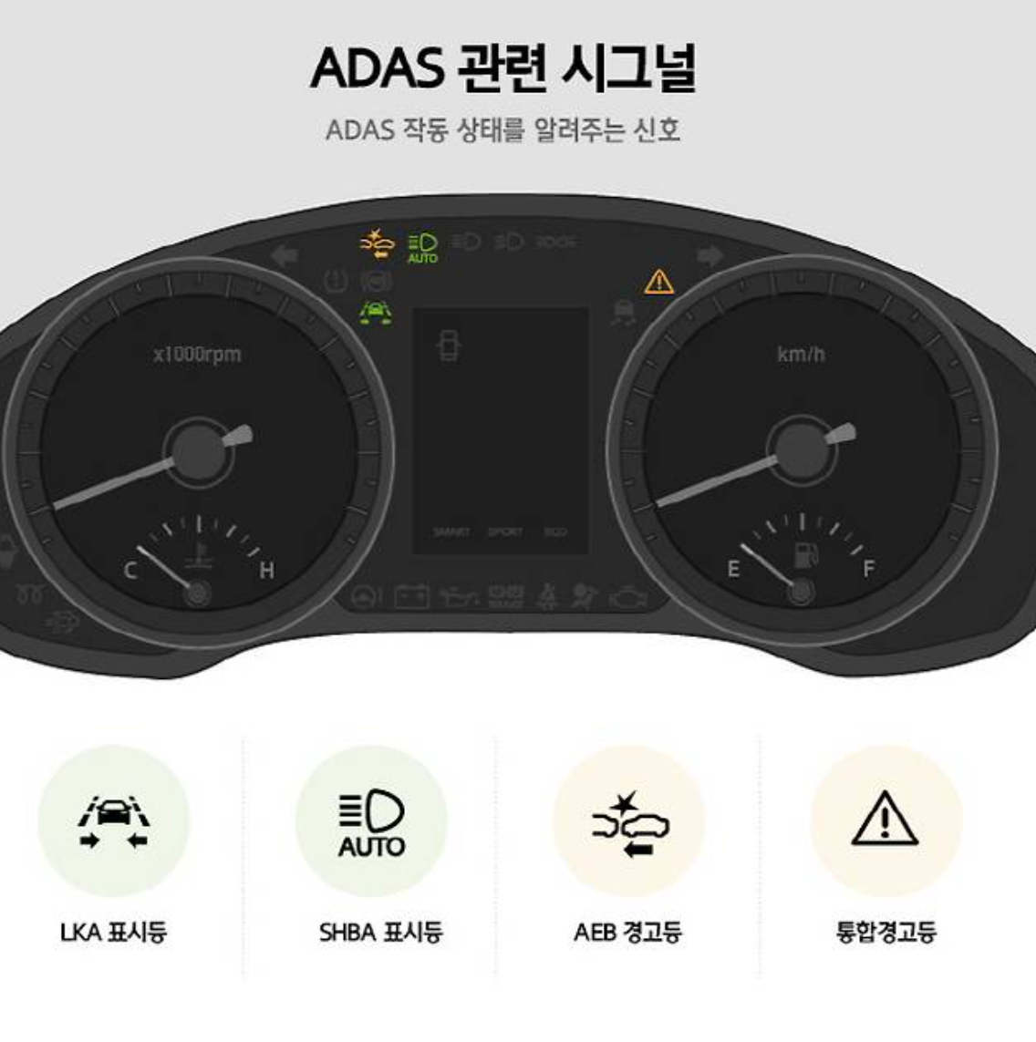 신형 현대차 모델에는 자율주행 기술이 탑재되어 있어 ADAS 시스템 경고등이 자주 등장합니다.
