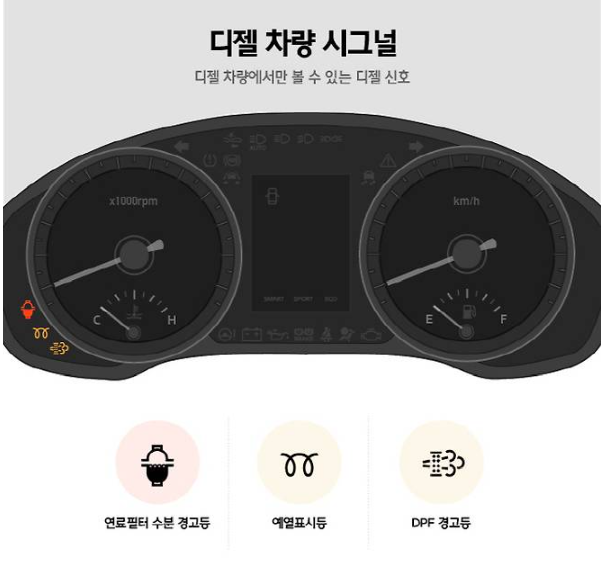 디젤 차량은 배출가스 규제로 인해 별도의 장치와 경고 시스템을 사용합니다.