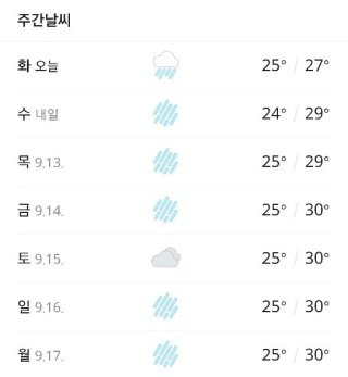- 낮 최고기온: 서울 24도, 인천 24도, 춘천 23도, 강릉 24도, 대전 26도, 대구 27도, 전주 26도, 광주 26도, 부산 29도, 제주 28도